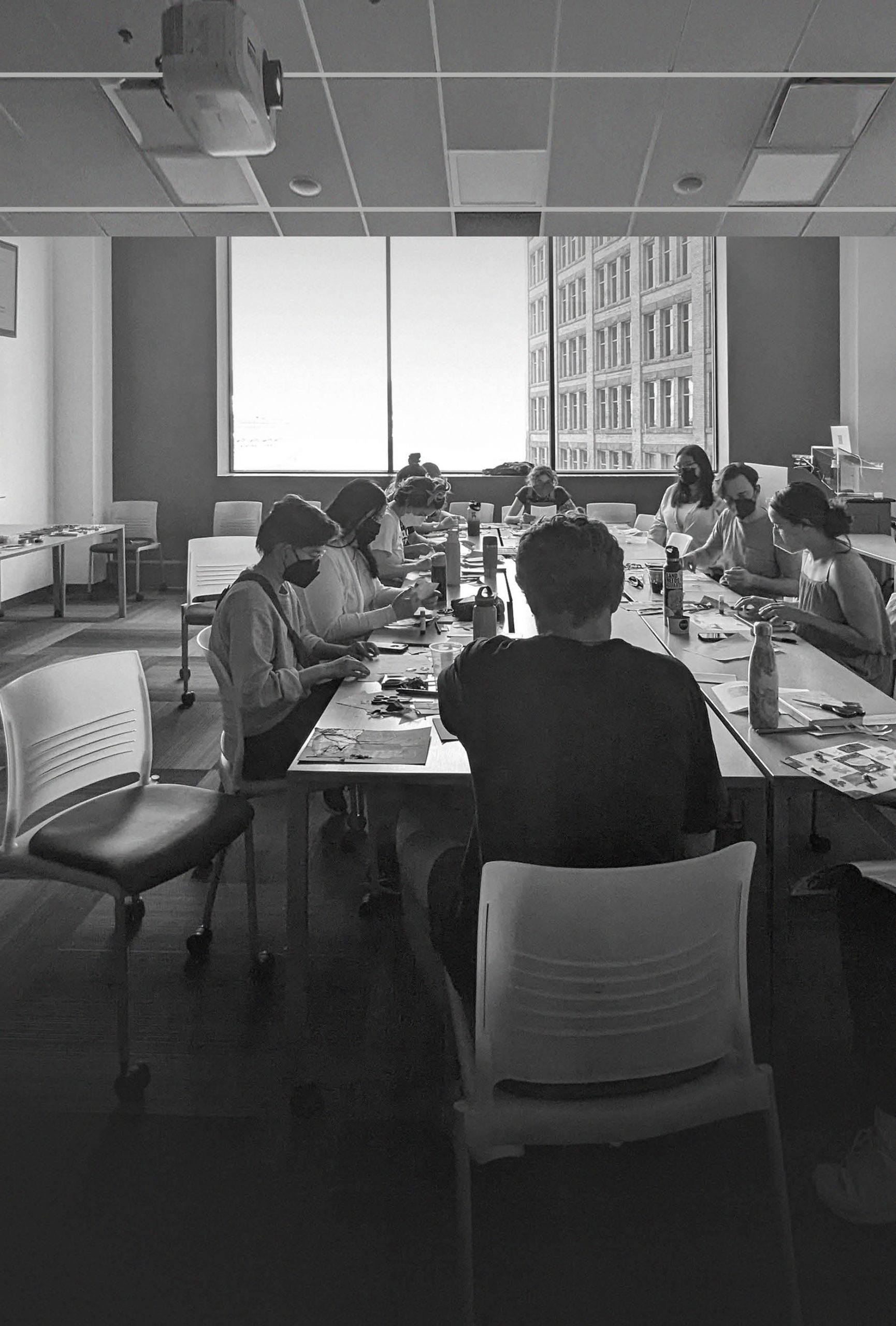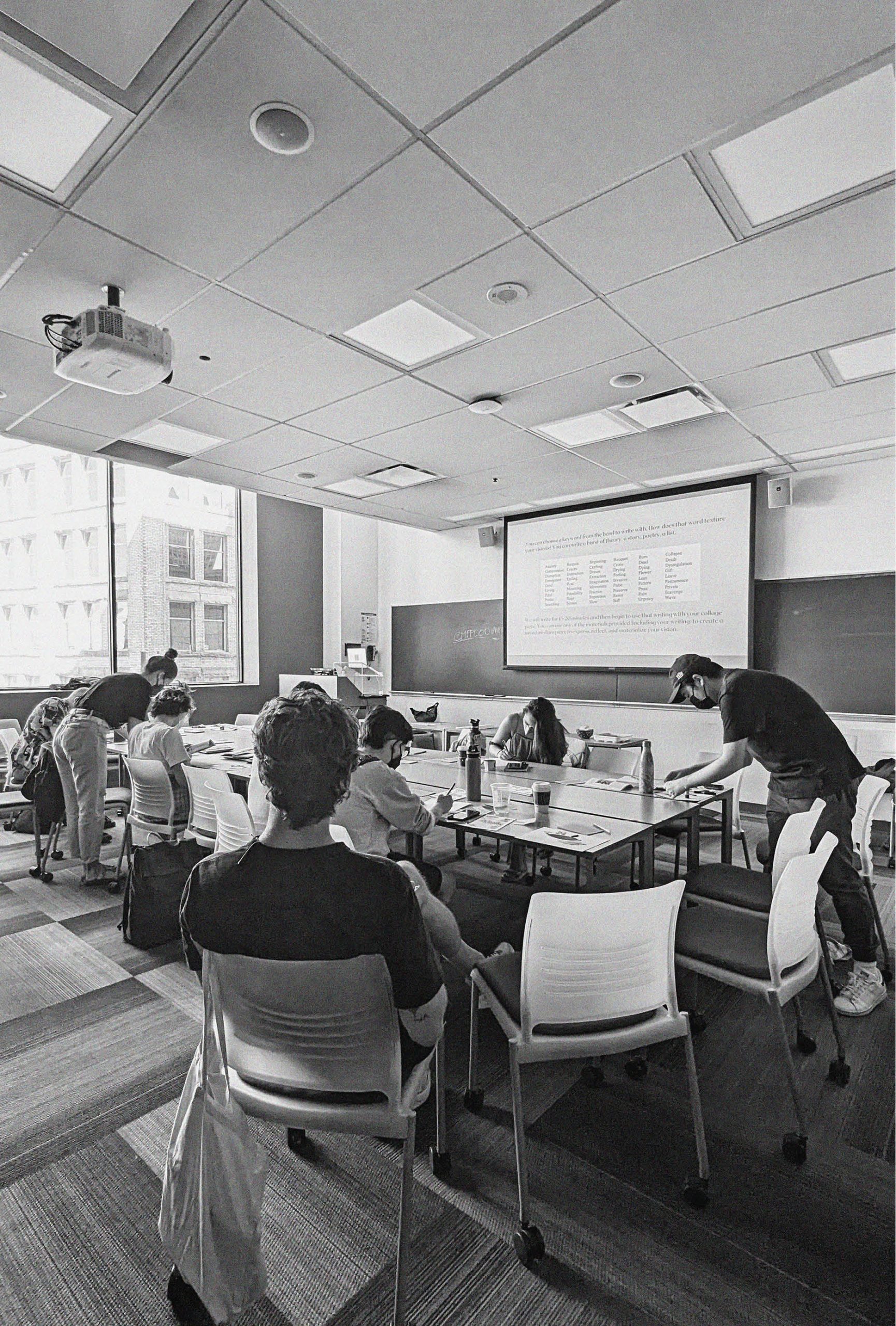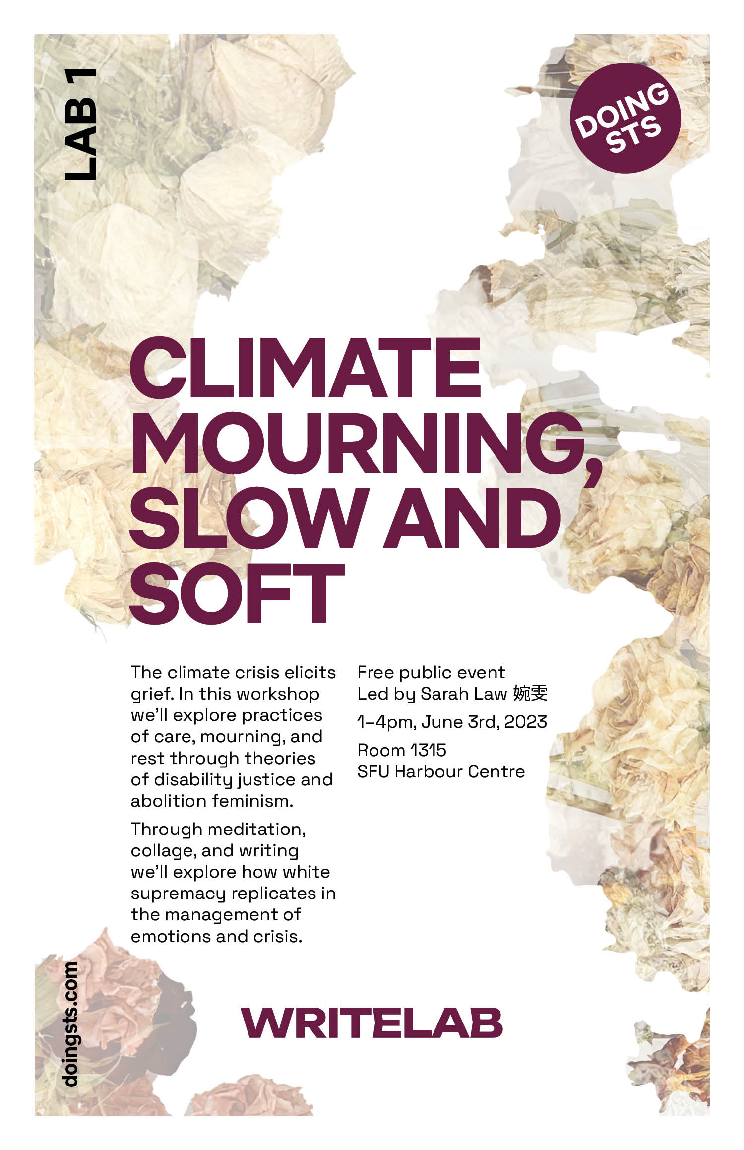 Collaging with Sarah's dried petals at the Slow and Soft workshop, June 2023, SFU Harbour Centre (Photos: Mathew Arthur)