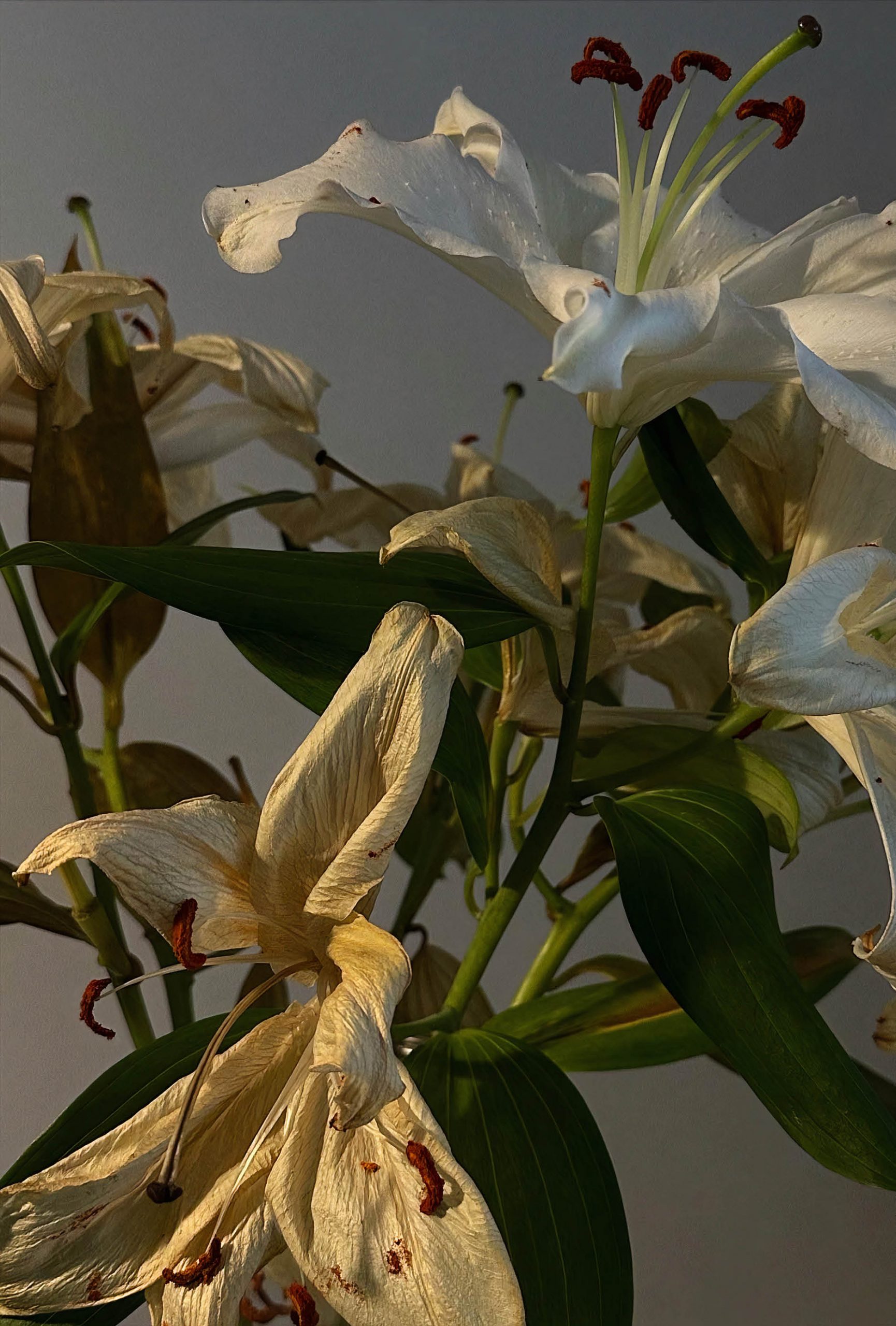 Dying and drying lilies on my coffee table