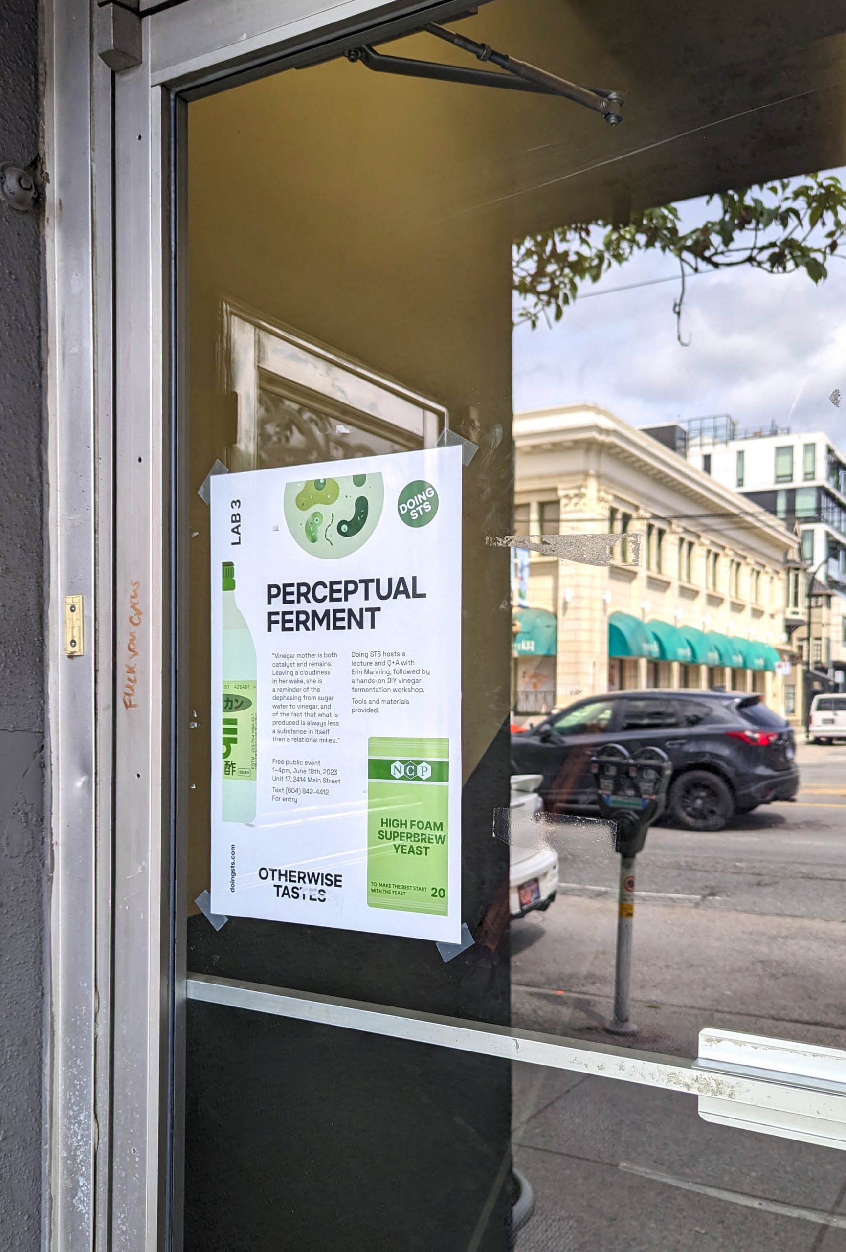 Transduction cannot be measured. There is no absolute point where one thing is itself and another thing becomes another. There is only ever the dephasing. And the mother. As expression of the dephasing it could be said that vinegar is the notational remains of the process of tending to water, mango seed, yeast and then to mother over a period of three months. And that the mother is the form the excess takes, the document of its dephasing. But the vinegar isn’t reducible to its parts—it is an expression all its own, a “stimmigkeit with the attended presences” certainly, but only if the Stimmung has concern for the differential inflection activated in the transduction. The acidic mood of the event simply cannot be captured, let alone traced back. And the mother really is her own event, tending as she does toward new inflections on a vinegary spring day.