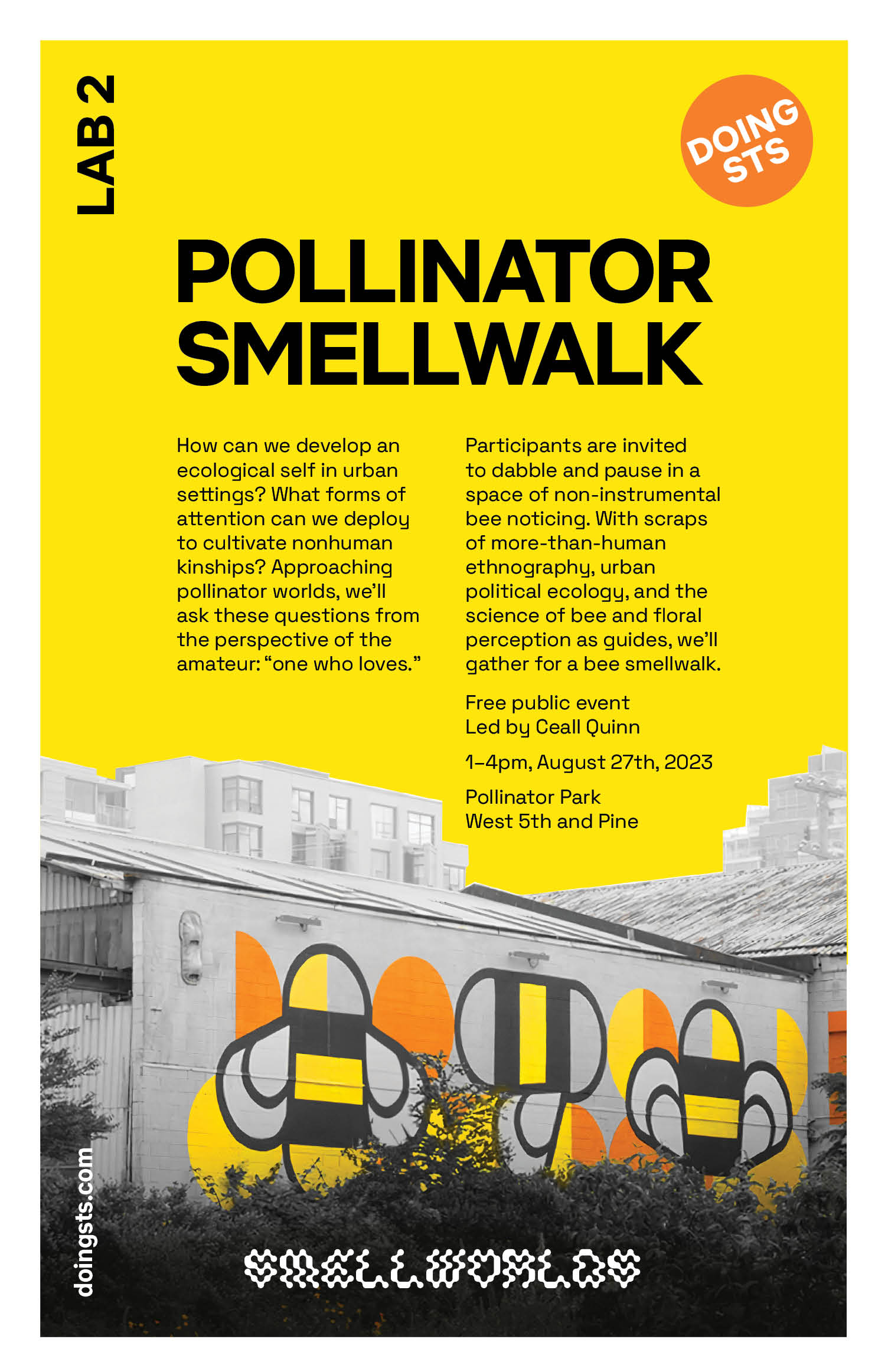 I invite you to slow down together as we hone our arts of attention to participate in the “open-ended gathering" (Tsing 2015, 23) that is the urban everyday. We will do so through engaging our sensorium, and specifically honing into the affordances of olfaction, AKA smell, in relation to pollinators and their floral partners.