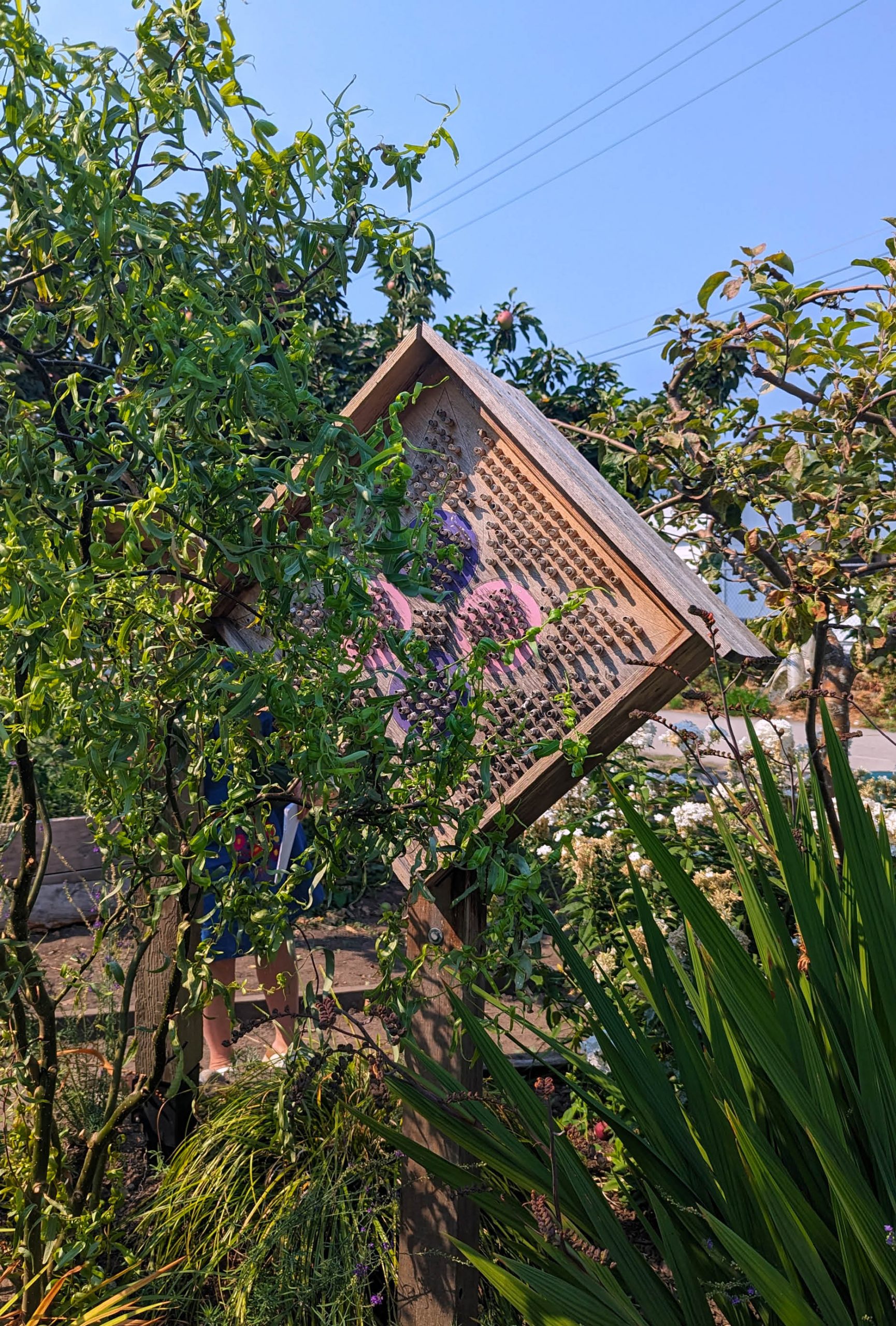 The explosion of flowering plant species in the Cretaceous period (between 125 and 65 million years ago) correlates to the emergence of bees. A carnivorous wasp started collecting pollen for protein, eventually converting to a strictly vegetarian lifestyle, becoming what we know as bees. There are over 20,000 known species of bees globally with nearly 500 described in so-called British Columbia. Bees are foragers, and their physiology and development reflects this. They are fantastic pollinators because the entirety of their life cycle is dependent on the pollination event. Their larva only consume pollen, so adults collect large quantities, moving it from flower to flower in the process. They have evolved specialized morphological structures to aid in the transportation of pollen like pollen-carrying structures and hairs, combs, brushes, specialized mouth-parts and tongues—and a positive charge that draws negatively charged pollen grains to them.