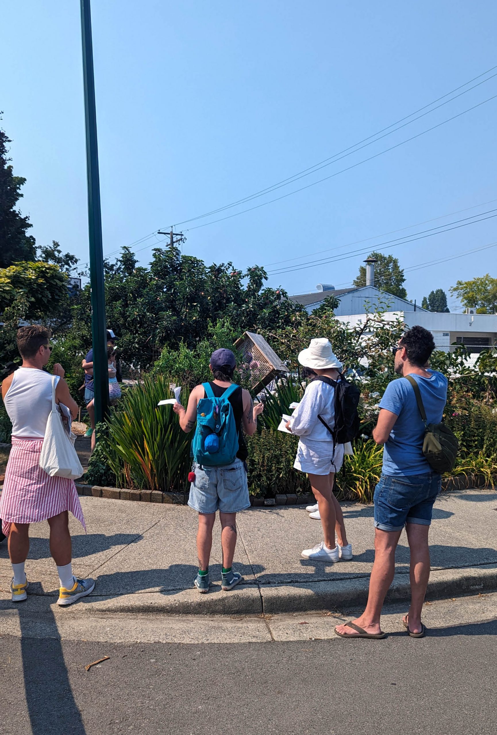 Entering into dialogue with place can be as simple as noticing your surroundings while intentionally expanding perceptual scope beyond solely human references. Ask questions like: What beings are around? What are they doing? How might they experience their share of the world? How do we inform the shape of each other's lives, and what are the stakes of that shaping? To perceive oneself as sensor in a common field co-composed with a multiplicity of others is a step towards nourishing an ecological subjectivity that maintains a respectful balance between the continuity and difference of self and others. Attuning to the co-participants that collectively produce place while walking is a primer to the delight, strangeness, and potential transformations that flow from encounter.
