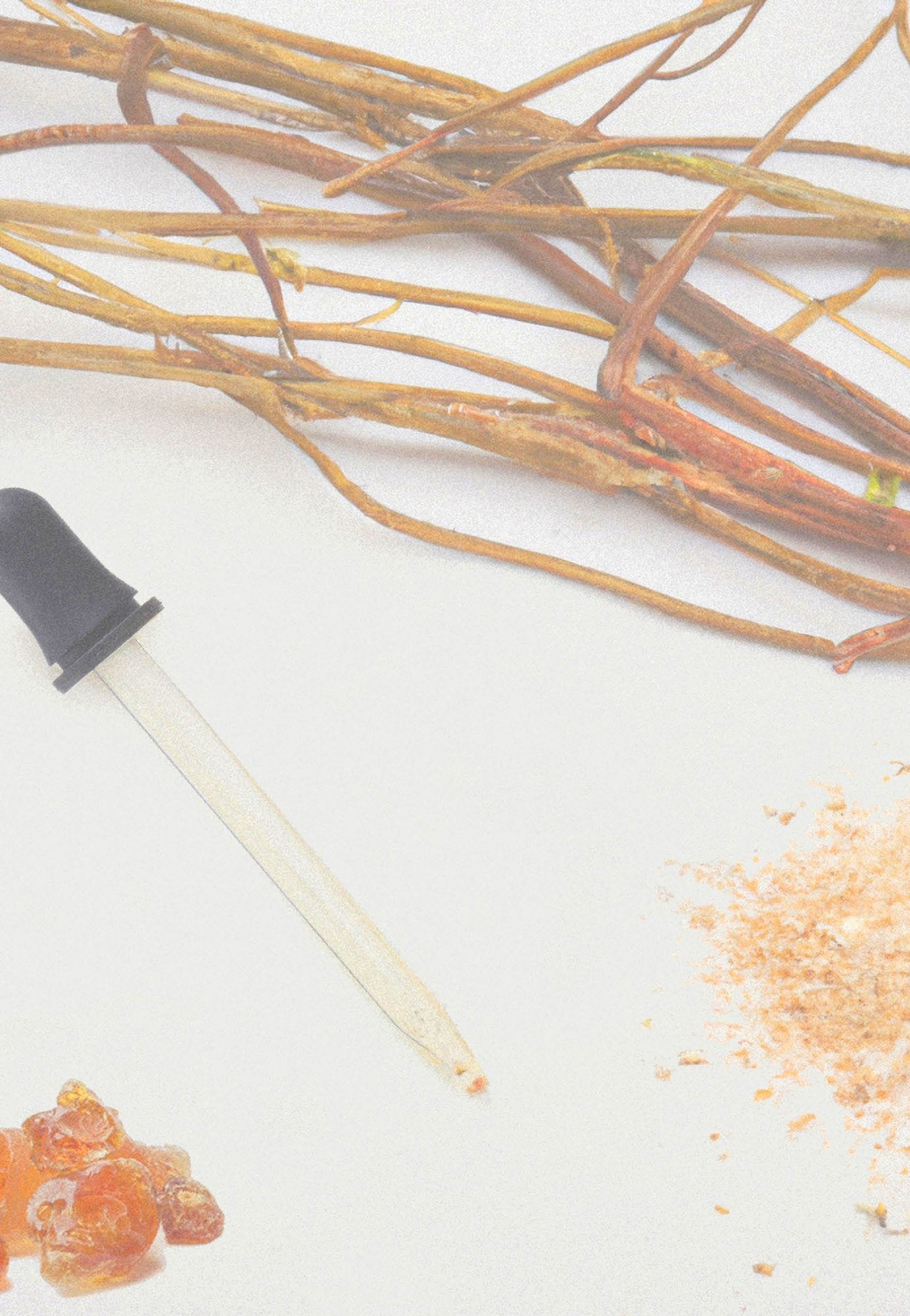 Bee propolis, clay, tarragon, tomato leaves, sap, pine needles, tea, coffee grounds, tonka beans, ginger, moss, cardamom